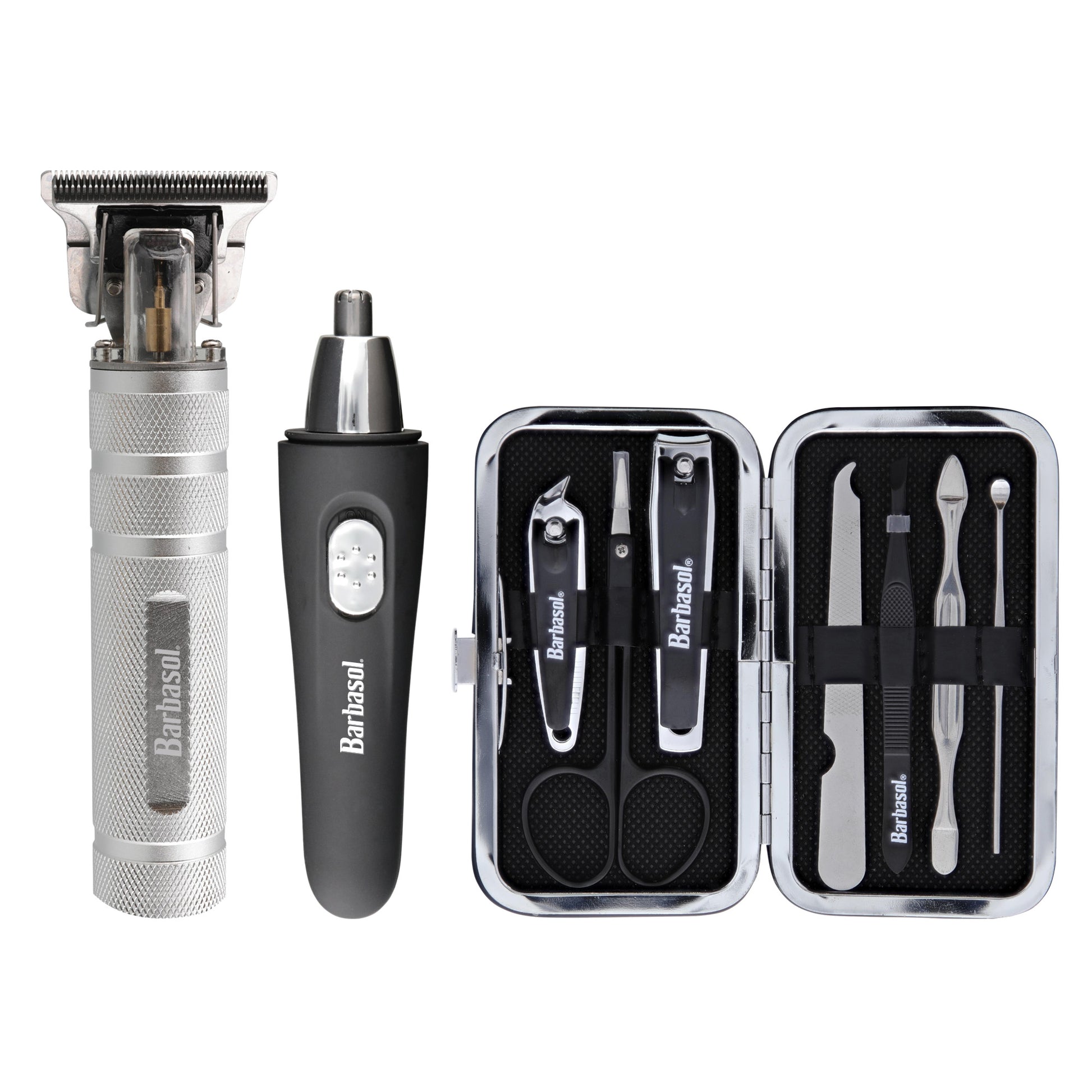 Deluxe Travel Grooming Kit: Rechargeable T Blade Shaver, Ear and Nose Trimmer, Manicure Set