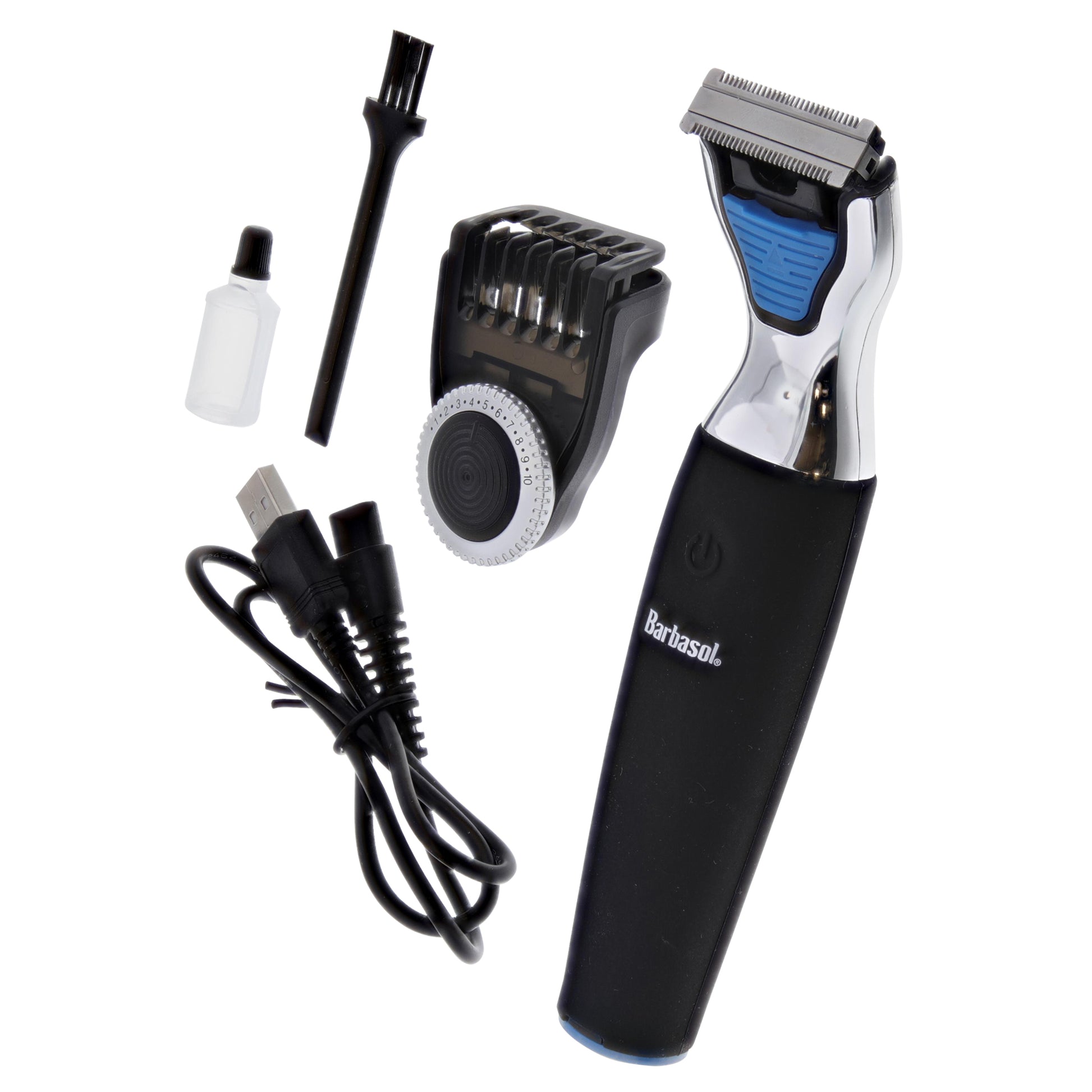The Barbasol Power Single Blade provides a close stubble shave with the use of shaving cream or gel or can be used dry as a grooming tool. The stainless steel blades help to trim, edge, and shave to a close stubble. The product features an adjustable beard trimmer, 20 length settings 0.5MM to 10MM and a silicone handle which allows for a non-slip, comfortable grip. The stainless steel blades deliver a close, comfortable shave while the 4 comb guides refine and style sideburns and facial hair.