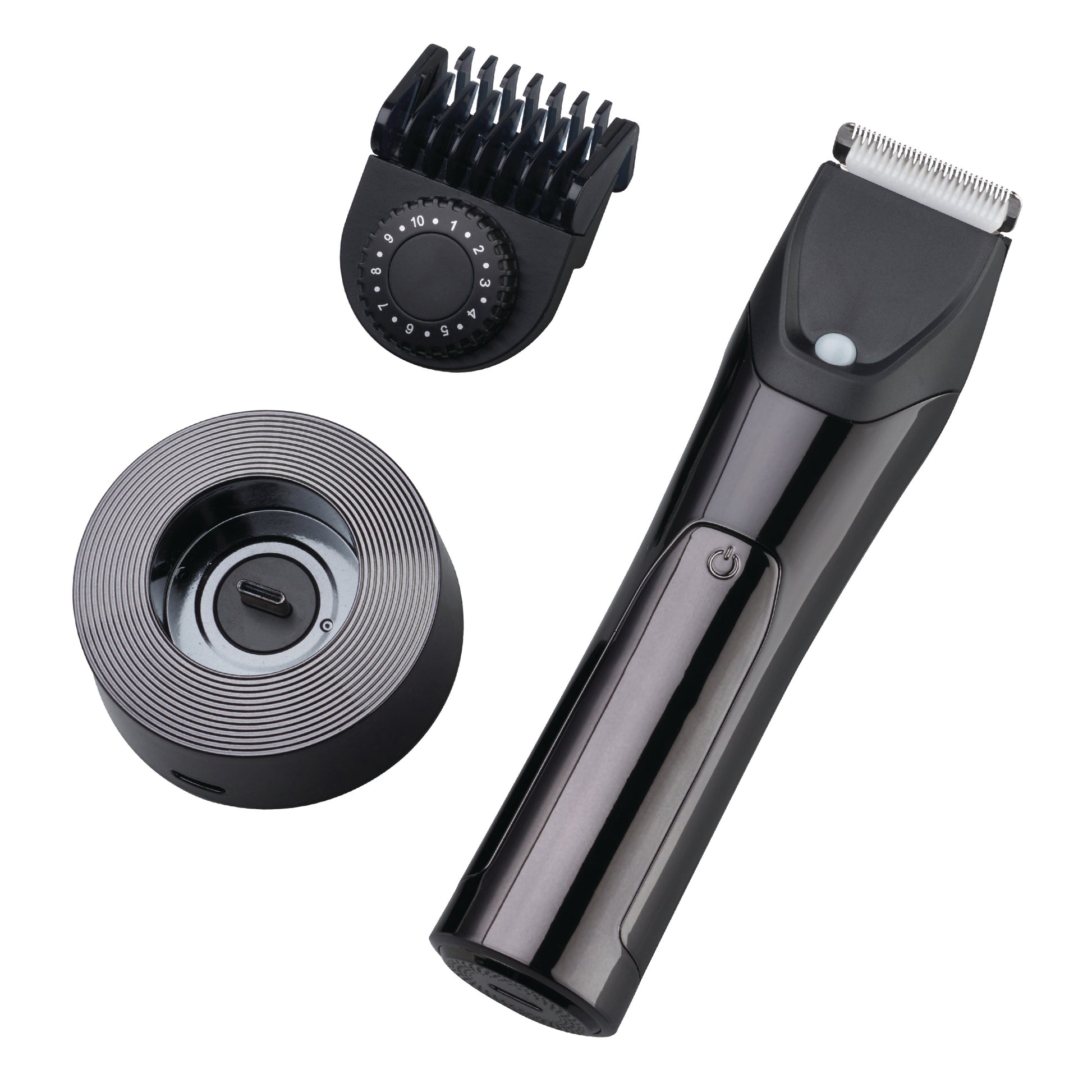 Look no further than the LCD Rechargeable Beard Trimmer with ceramic blades by Barbasol. This trimmer boasts a powerful LED light that illuminates your grooming area for clean, confident cuts for nay male. With adjustable settings from 1 to 10 millimeters, you can achieve a variety of beard lengths, from a close stubble to a neatly trimmed short beard. The ceramic blades are not only known for staying sharper for longer, but they are also hypoallergenic, making them ideal for those with sensitive skin. Never get caught off guard by a low battery again. The trimmer's integrated LCD display conveniently shows the remaining battery percentage on its lithium battery. The lithium battery itself is known to hold a charge for extended periods, so you can groom with confidence. Recharging is a breeze thanks to the included USB cable, allowing you to plug it in to any compatible power source. For added convenience, the trimmer comes with a complete care package. A charging base docking attachment keeps your trimmer organized and ready to use, while a carrying bag allows for easy portability. To maintain the trimmer's peak performance, a cleaning brush and lubricant oil are also included. With a charging time of only 80 minutes and a cordless runtime of 90 minutes, this trimmer offers exceptional performance without sacrificing convenience. These blades are known for being durable, staying sharp for a long time, and being less likely to irritate the skin. Great for any Male Hypoallergenic: This is a good option for people with sensitive skin. LCD display: This shows you the battery level so you know when to recharge. Lithium battery: Lithium batteries are known for holding a charge for a long time. USB charging: This makes it convenient to charge the trimmer anywhere you have a USB port. Charging base docking attachment: This provides a convenient way to store and charge the trimmer with a bag to store your trimmer 1 to 10 mm settings: This allows you to trim your beard to a variety of lengths. Charging time: 80 minutes Usage Time: 90 minutes